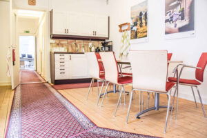 • Lunchrum med porslin, vatten-/kaffekokare, mikrovågsugn, kyl, diskmaskin